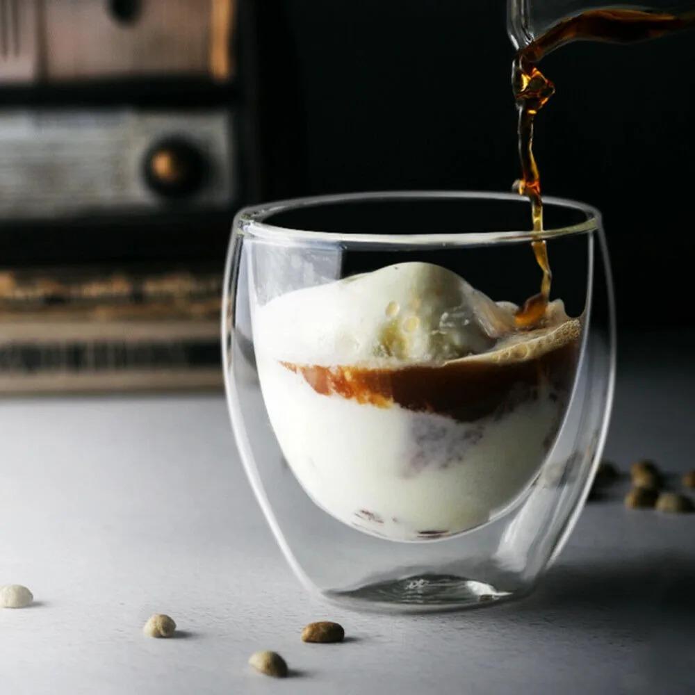 كوب شاي نبيذ الحليب بطبقة مزدوجة من زجاج القهوة المقاوم للحرارة معزول